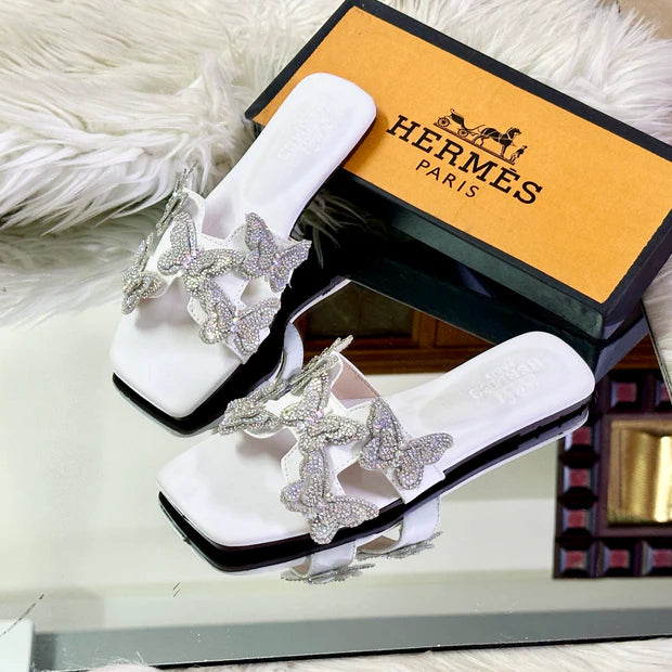 The Crystal Butterfly Slides are a blend of comfort and sophistication. Crafted with high-quality materials, these slides feature a delicate butterfly design adorned with shimmering crystals, making them a standout piece in your footwear collection. The adjustable straps ensure a perfect fit, while the lightweight design guarantees all-day comfort.