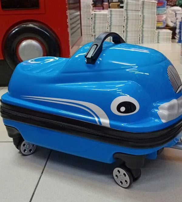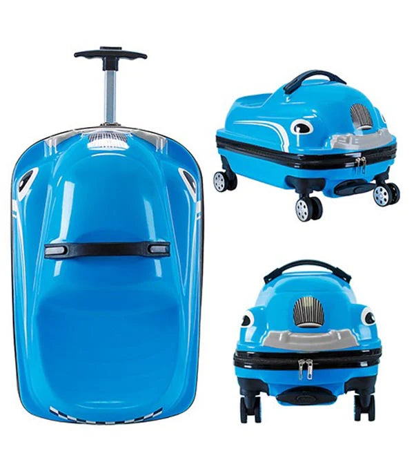 Ride-On Car Shaped Travel Suitcase Luggage Trolley Blue