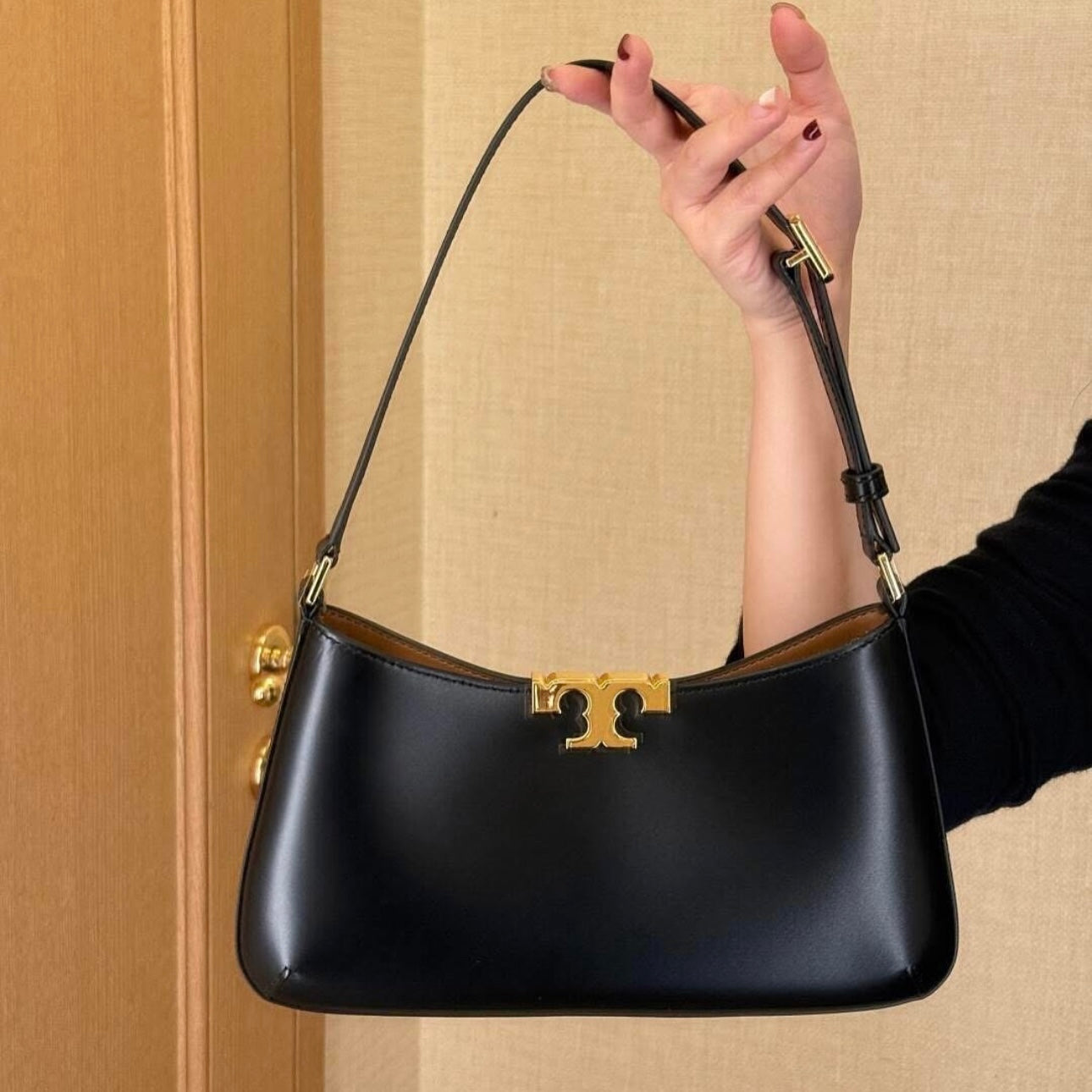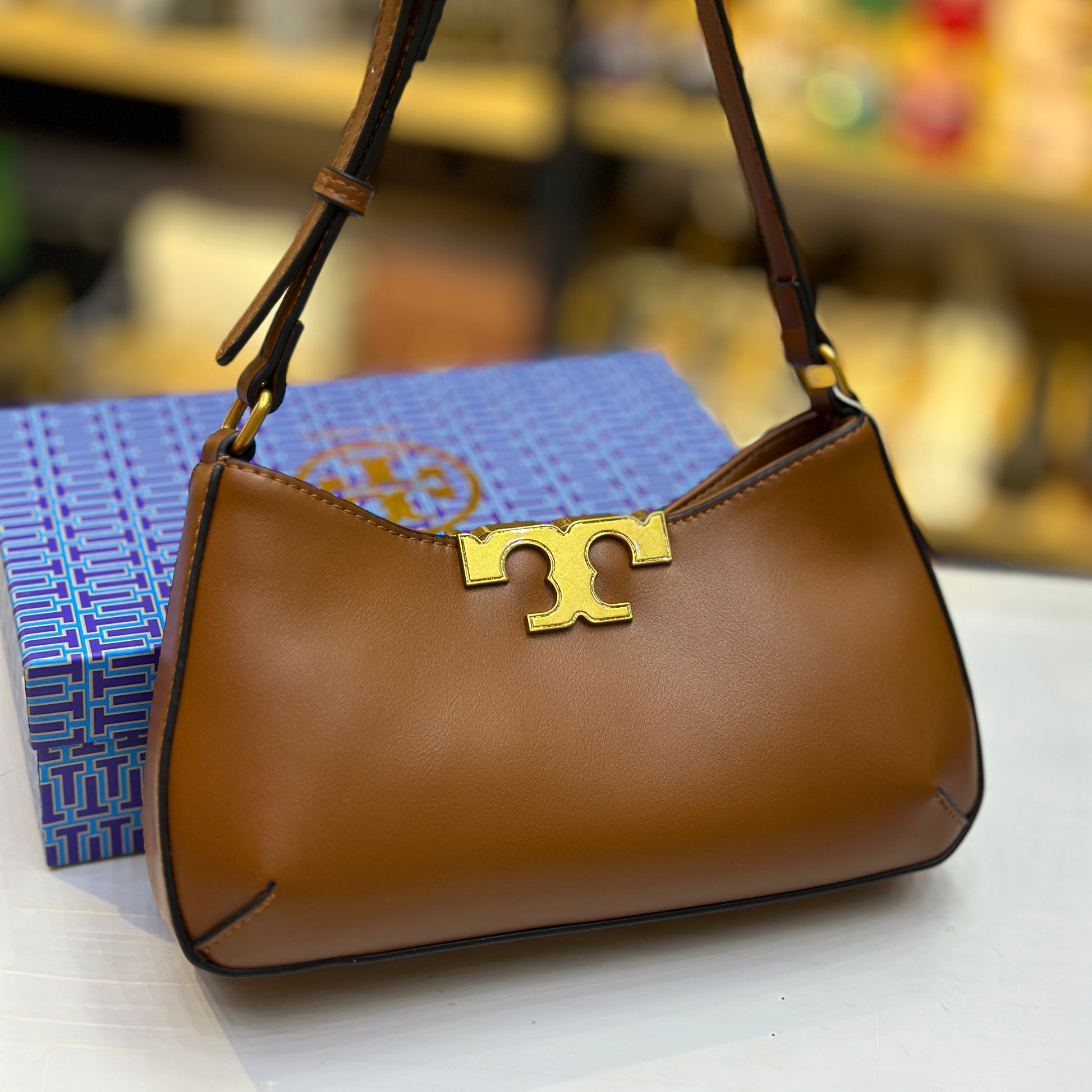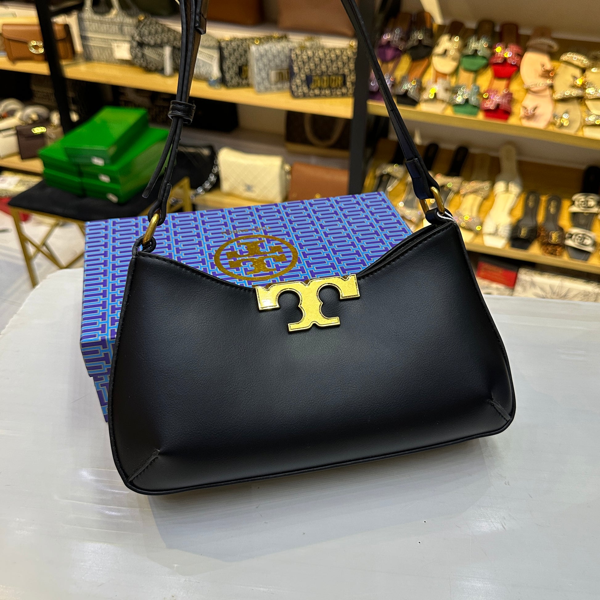 This elegant shoulder bag is the perfect accessory for any occasion. The Eleanor Slim Shoulder Bag by Tory Burch UAE is crafted with expert precision and features a sleek, black design that exudes sophistication. With its slim shape and durable material, this bag is both practical and stylish for any modern woman.