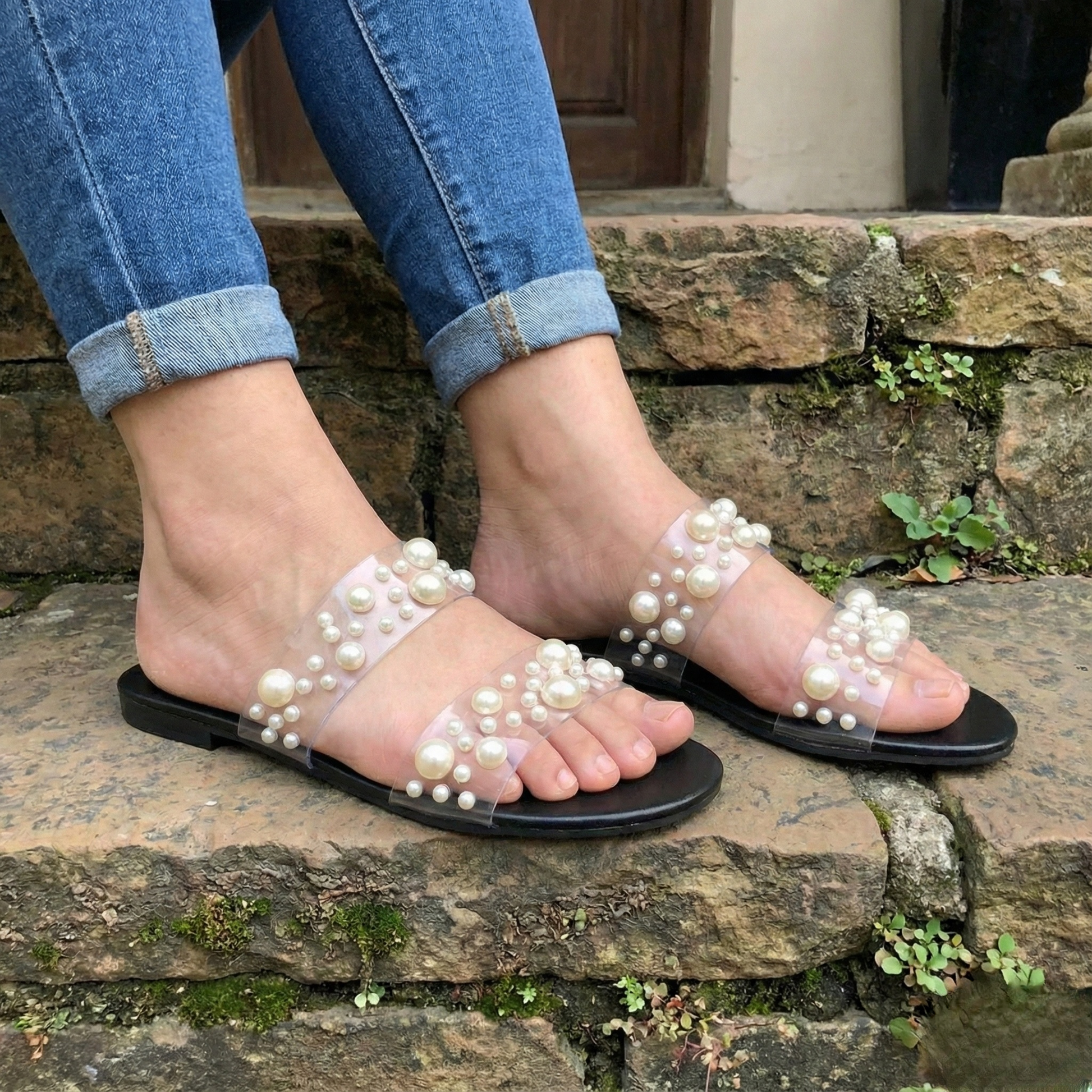 Product Detail: Make a statement with the Z-Pearl — a stylish shoe with a pearls imbedded in transparent plastic for an edgy look. Show off your daring side and stand out from the crowd. Make sure you're ready to take risks and look great doing it!